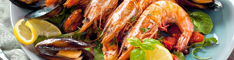 mit Riesengambas 8/12, Kirschtomaten in Weißweinsauce (leicht scharf)
