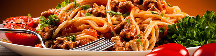 Mit Tomatensauce, Pancetta (italienische Speck) und Zwiebeln